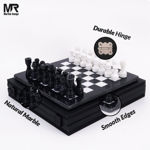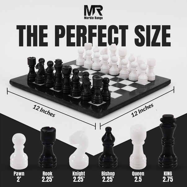 Marble Chess Set 12" Inches Black and White Handmade Chess Sets for Adults - Marble Board Game for Family with Storage Box & 2 Extra Queen, Ideal Travel Chess Set & Home Décor
