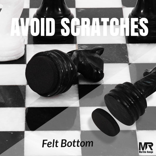 - SIZE Board Size - 12 Inches. King Measures: 2.75 Inches. Queen: 2.5 Inches. Bishop: 2.25 Inches. Knight: 2.25 Inches. Rook: 2.25 Inches. Pawns: 2 Inches. The Chess Board comes along with an attached felt bottom to avoid scratches. Separate felt bottoms packet for all chess figures.