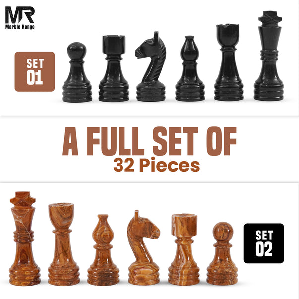 - WHAT IS INCLUDED - 32 Chess Figures; 2 Kings, 2 Queens, 4 Knights, 4 Bishops, 4 Rooks, 16 Pawns.. Comes Along With MARBLE RANGE Branded Secure & Fragile Packaging.
