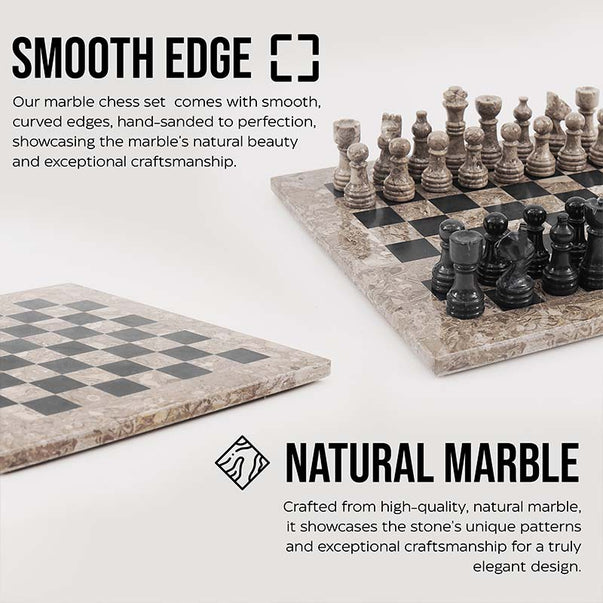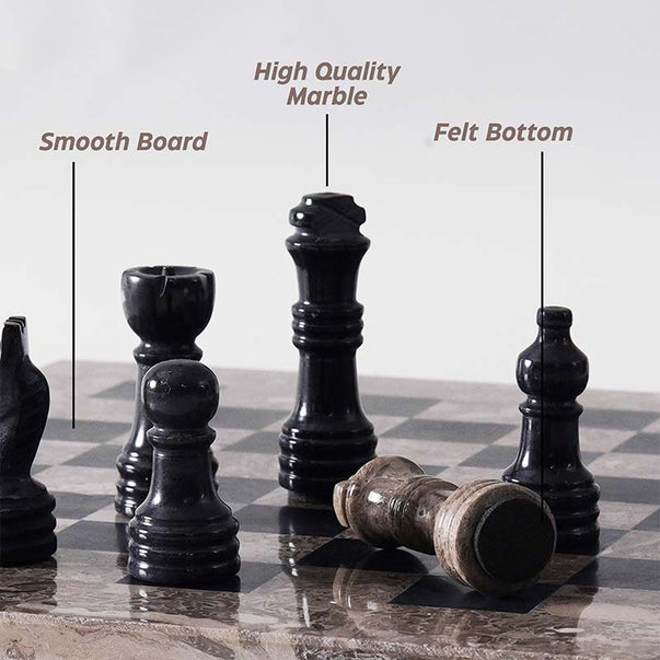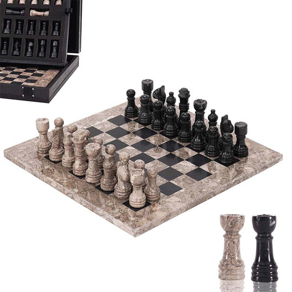Marble Chess Set 10" Inches Oceanic and Black Handmade Chess Sets With Storage Box and 2 Extra Queen