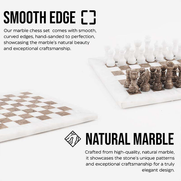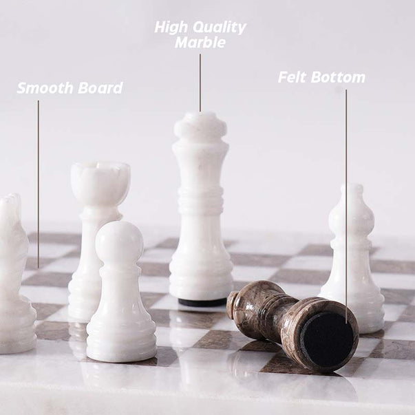 Marble Chess Set 10" Inches White and Oceanic Handmade Chess Sets With Storage Box and 2 Extra Queen