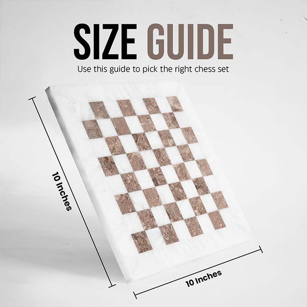 - SIZE - Board Size: 10 Inches. King Measures: 2 Inches. Queen: 1.8 Inches. Bishop: 1.75 Inches. Knight: 1.75 Inches. Rook: 1.75 Inches. Pawns: 1.5 Inches. The Chess Board Comes Along with an Attached Felt Bottom to Avoid Scratches. Separate Felt Bottoms Packet For All Chess Figures.