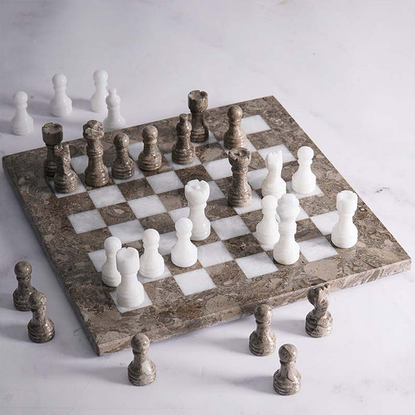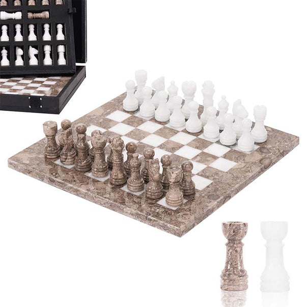 Marble Chess Set 10" Inches Verona and White Handmade Chess Sets With Storage Box and 2 Extra Queen