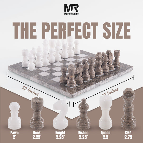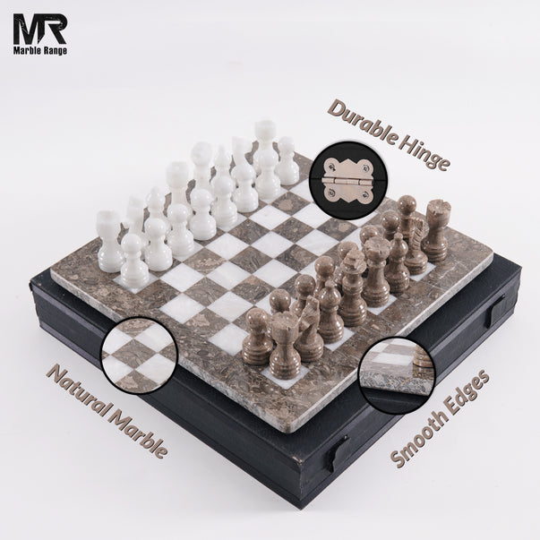 Marble Chess Set 12" Inches Oceanic and White Handmade Chess Sets With Storage Box and 2 Extra Queen