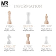 - SIZE: Board Size - 15 Inches. King Measures: 3.5 Inches. Queen: 3 Inches. Bishop: 2.75 Inches. Knight: 2.75 Inches. Rook: 2.75 Inches. Pawns: 2.25 Inches. The Chess Board Comes Along With An Attached Felt Bottom To Avoid Scratches. Separate Felt Bottoms Packet For All Chess Figures.