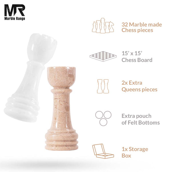 Marble Chess Set 15" Inches Verona & White Handmade Chess Sets for Adults - Marble Board Game for Family with Storage Box & 2 Extra Queen, Ideal Travel Chess Set & Home Décor
