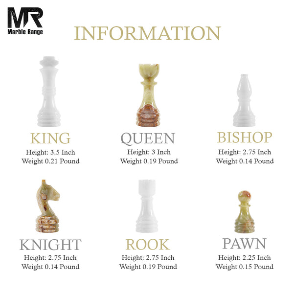 - WHAT IS INCLUDED - 1 x Chess Board & 32 x Chess Figures + 2 Extra Queens, 2 Kings, 2 Queens, 4 Knights, 4 Bishops, 4 Rooks, 16 Pawns. Comes Along Free Storage Box & Marble Range Branded Secure & Fragile Packaging.