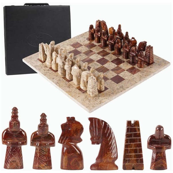 Coral and Red Antique 15 Inches Premium Quality Marble Chess Set