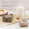 - COASTERS HOLDER: You can put coaster plates in the square shaped holder to keep it well organized.