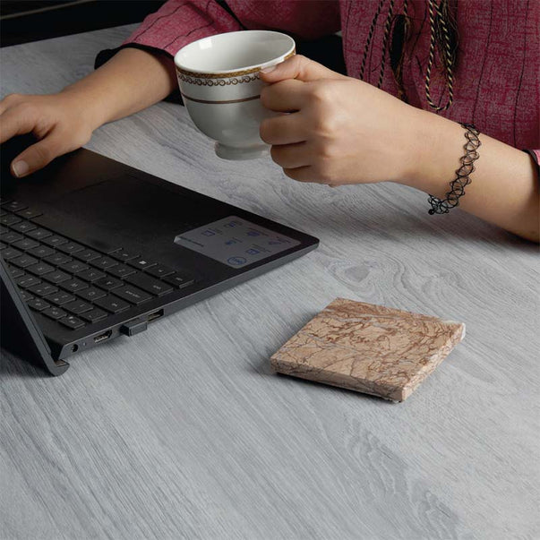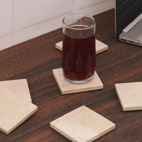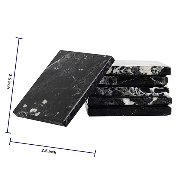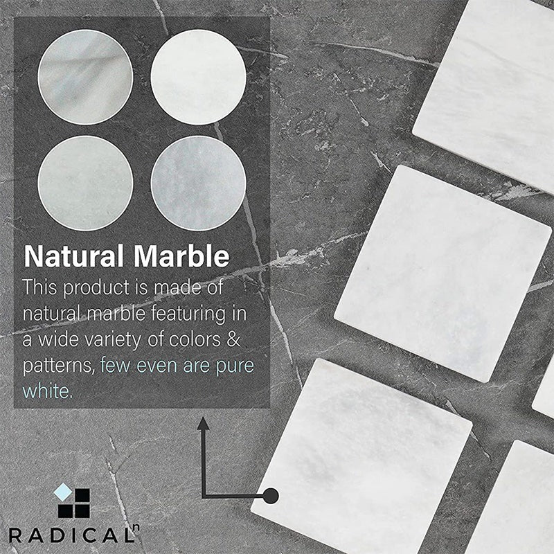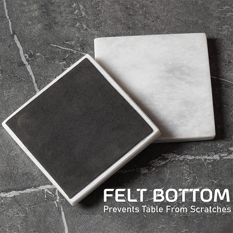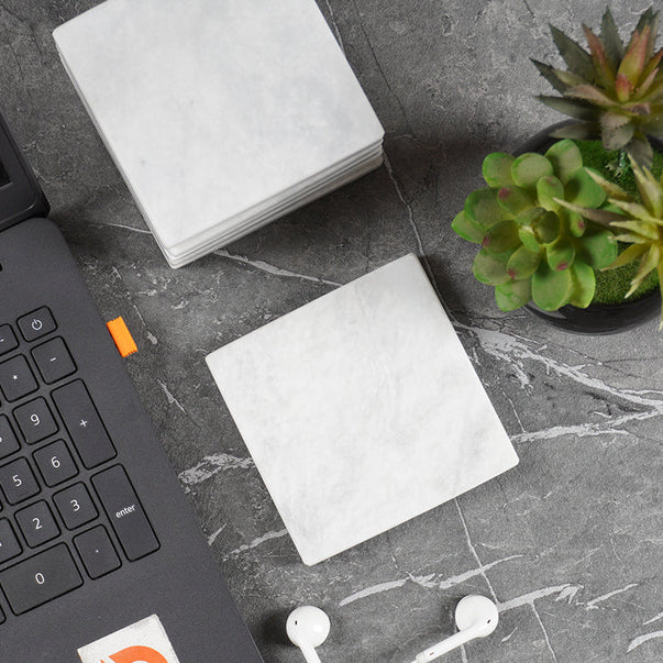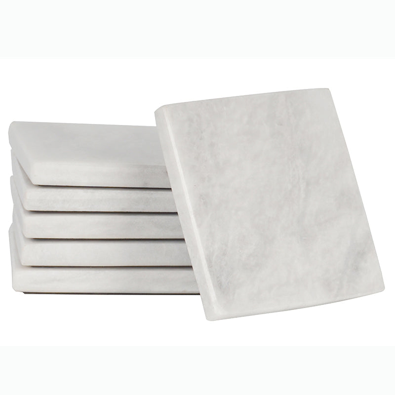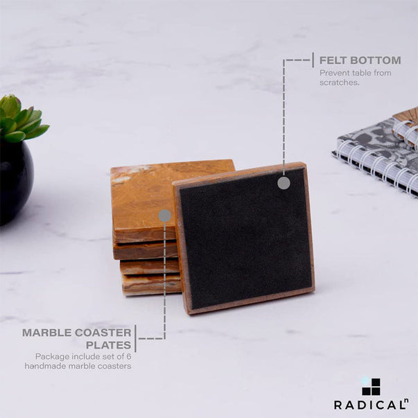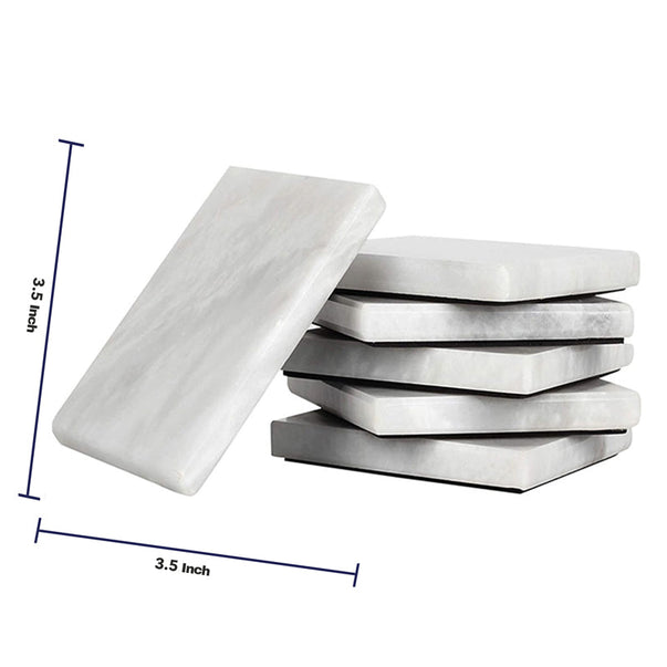 Radicaln Marble Coasters for Drinks White 3.5 Inch Handmade Set of 6 Square Coasters - Kitchen Caddy, Office Pot Drink Coaster Plates