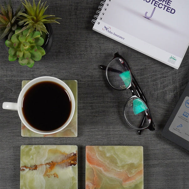 - MATERIAL: Made with the finest quality of onyx marble used. All coaster Plates are hand polished.