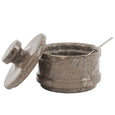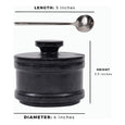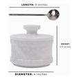 - DIMENSIONS: SALT CELLAR HEIGHT - 2.25" Inches, WITH LID - 3.5 Inches DIAMETER - 4"Inches SPOON - 5" Inches.