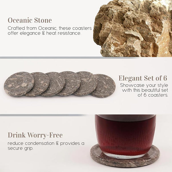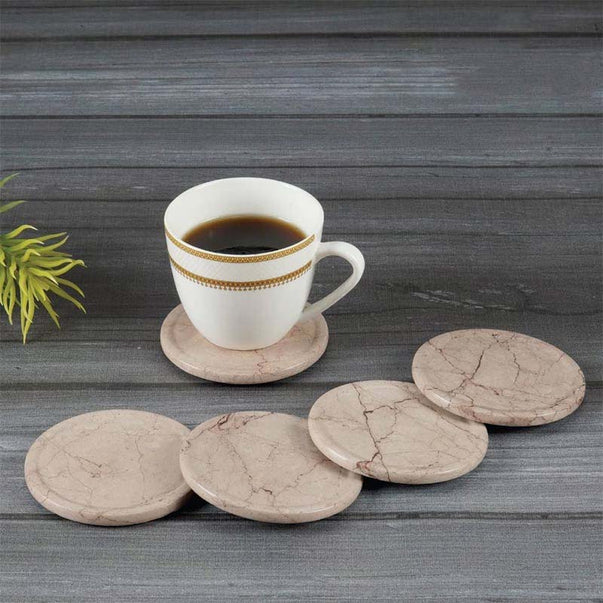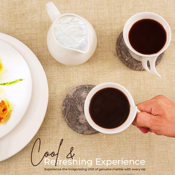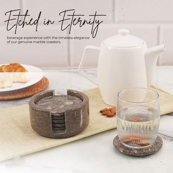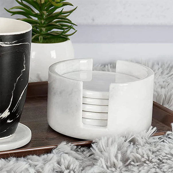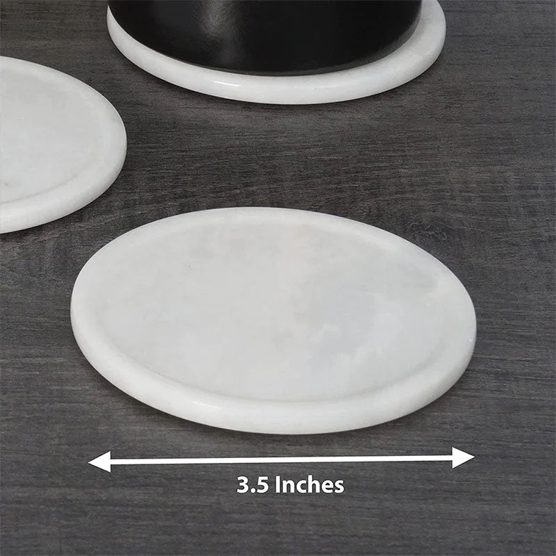 Radicaln Marble Coasters for Drinks 3.5 Inches Set of 6 Handmade Round Coasters with Holder - Coasters for Coffee Table - Home Office