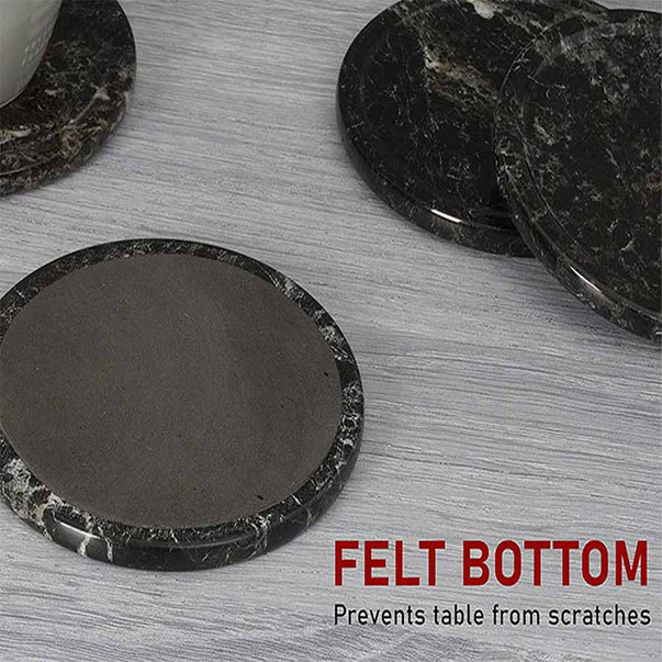 • SIZE: Each coaster plate measures up to 3.5 Inches with felt bottoms attached to it to avoid scratches on the table.