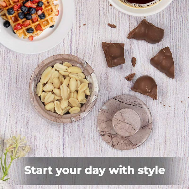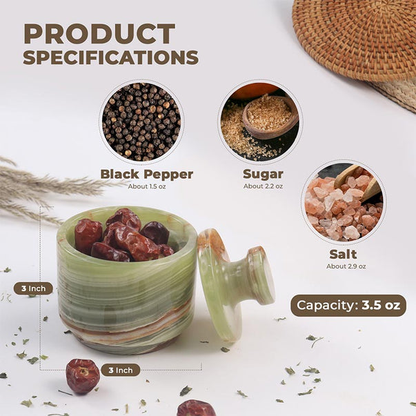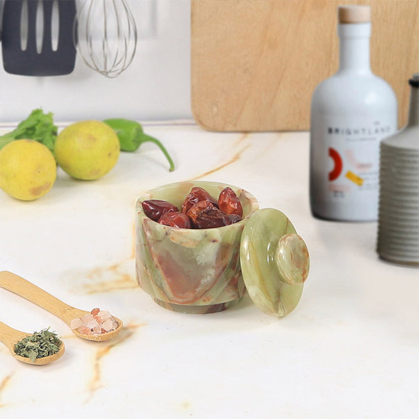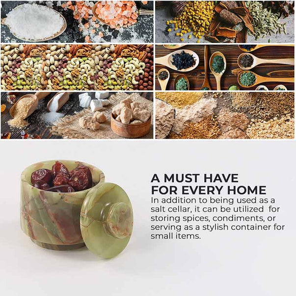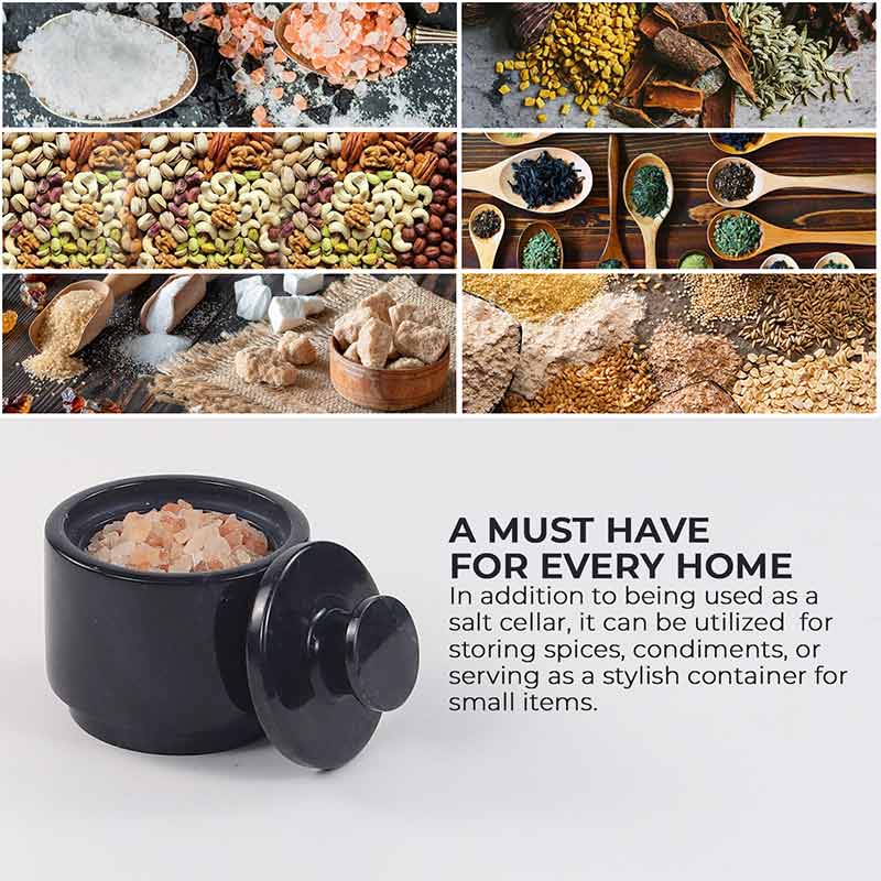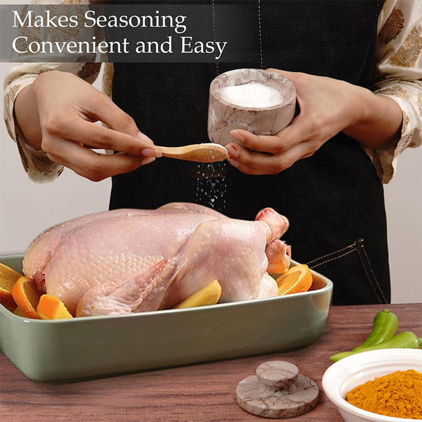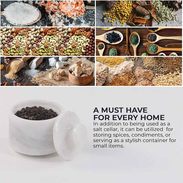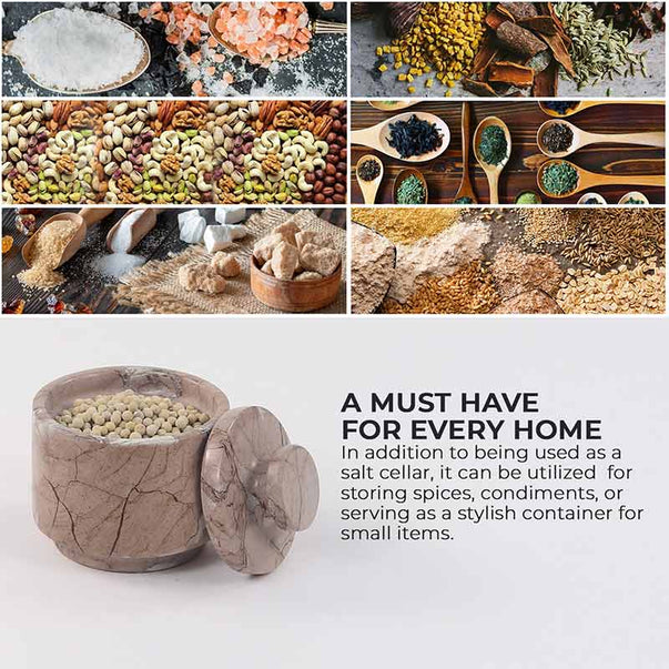 Marble Salt Cellar with Lid - 3" Inches Marinara Handmade Salt, Sugar, and Spice Holder, Ideal for Kitchen Storage