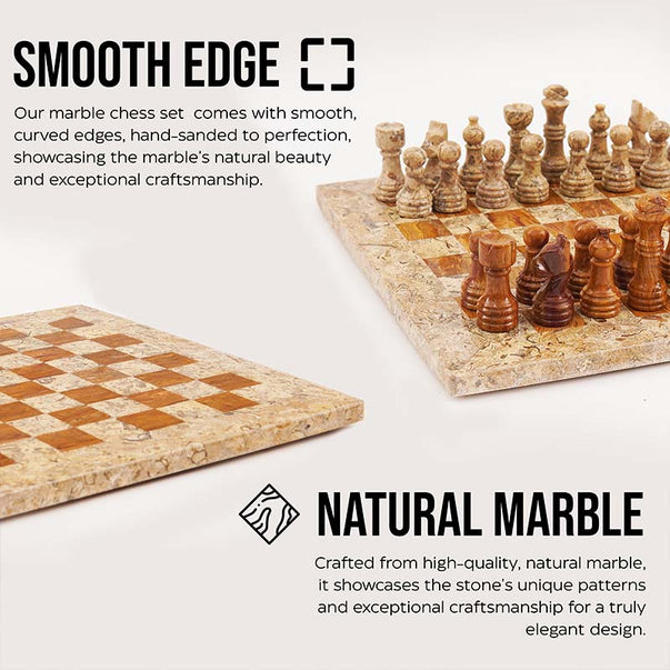 Marble Chess Set 10" Inches Coral & Red Handmade Chess Sets With Storage Box and 2 Extra Queen