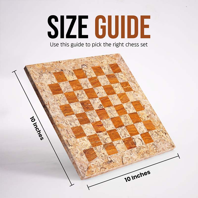 - SIZE - Board Size: 10 Inches. King Measures: 2 Inches. Queen: 1.8 Inches. Bishop: 1.75 Inches. Knight: 1.75 Inches. Rook: 1.75 Inches. Pawns: 1.5 Inches. The Chess Board Comes Along with an Attached Felt Bottom to Avoid Scratches. Separate Felt Bottoms Packet For All Chess Figures.