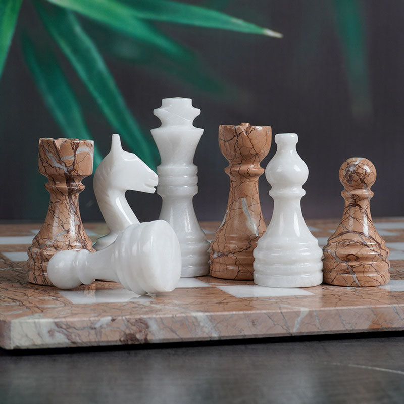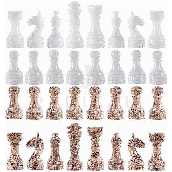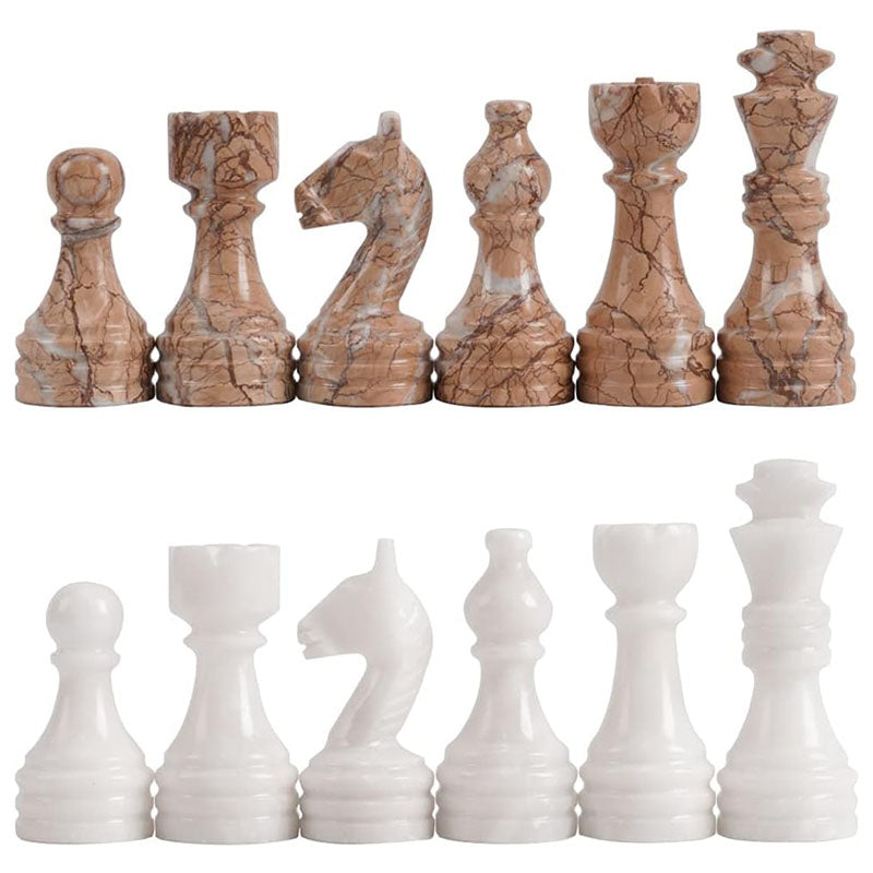 White & Marinara Natural Marble Chess Pieces