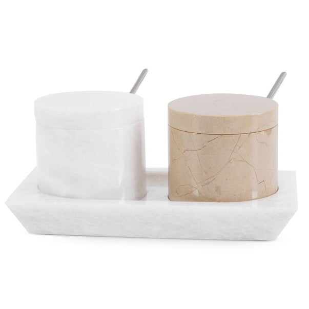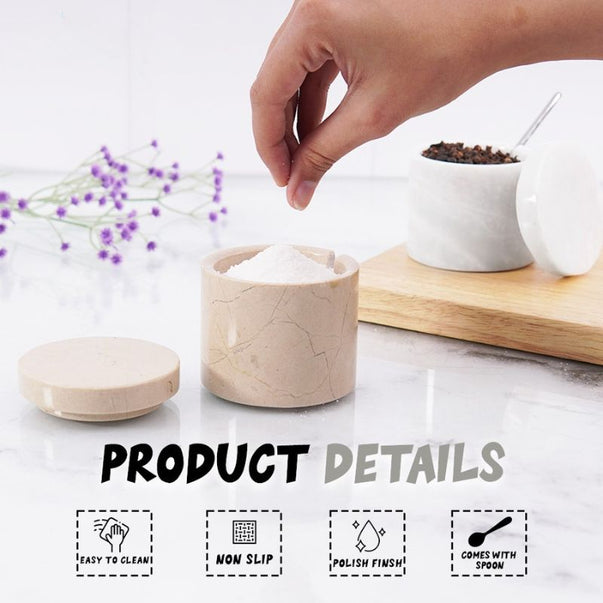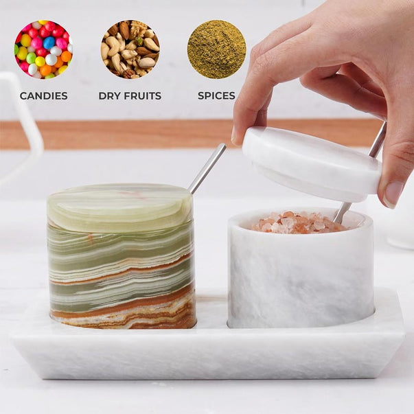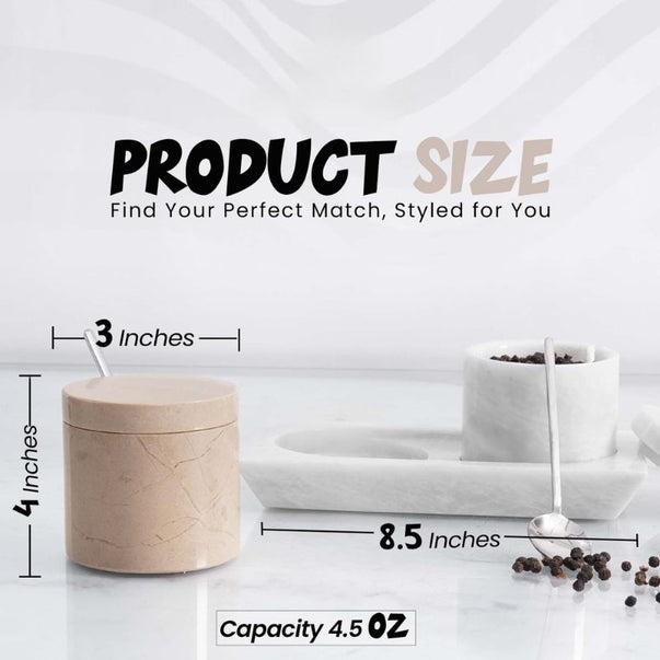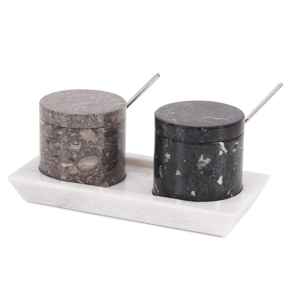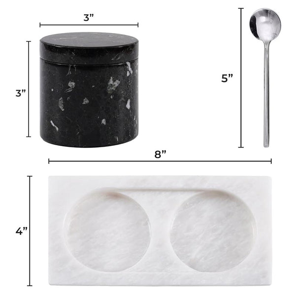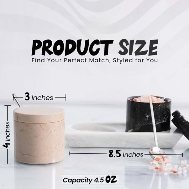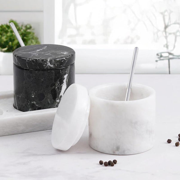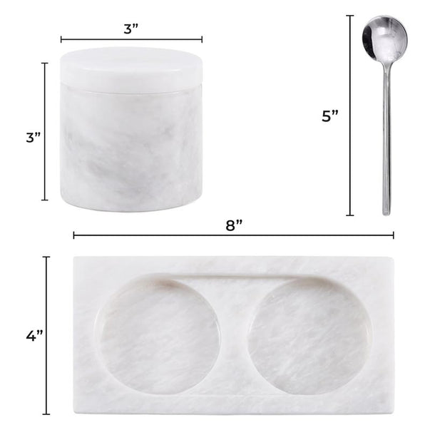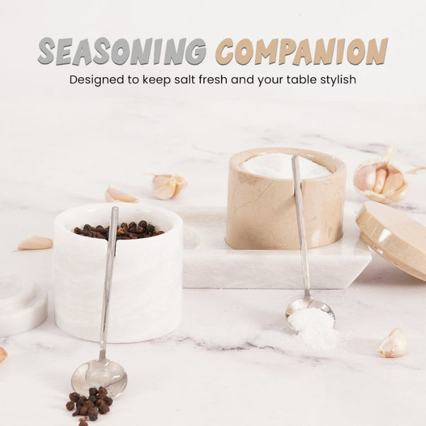 Salt Cellar with Lid, Spoon and Tray - Marble Serving Tray