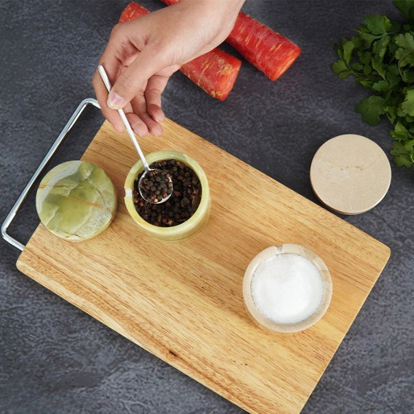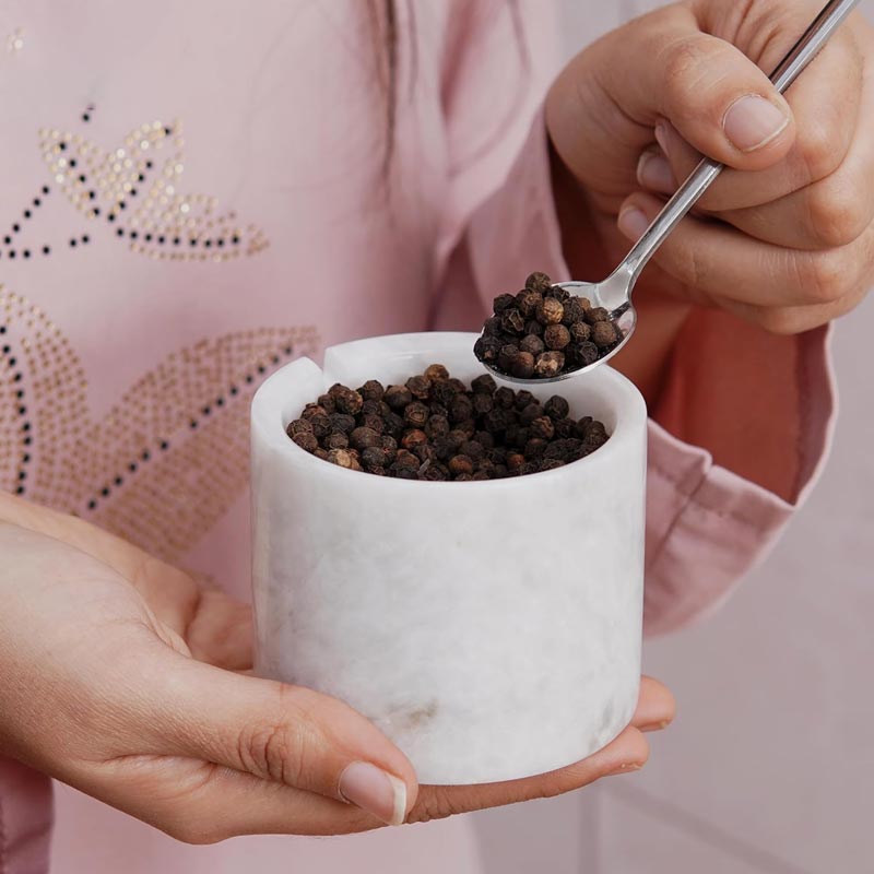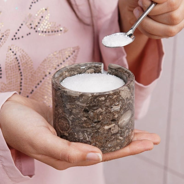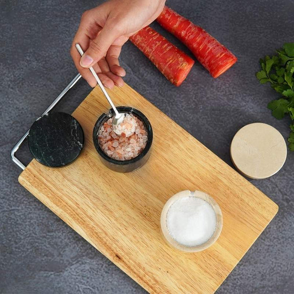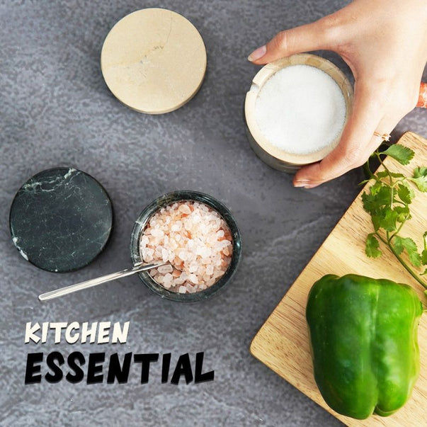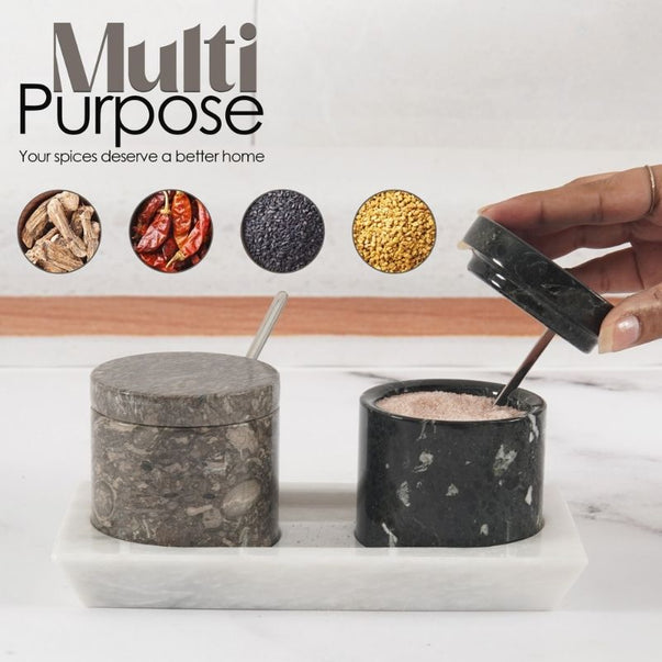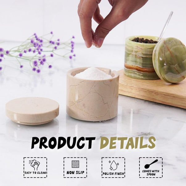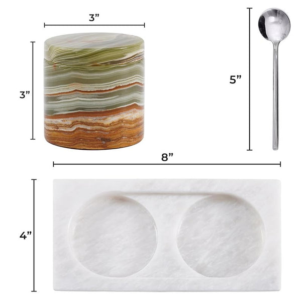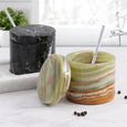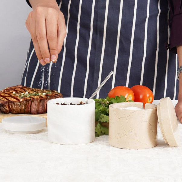 Salt Cellar with Lid, Spoon and Tray - Marble Serving Tray