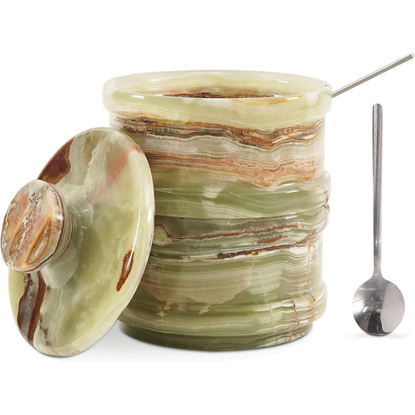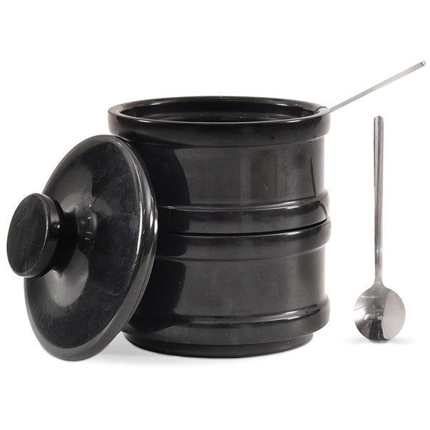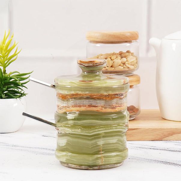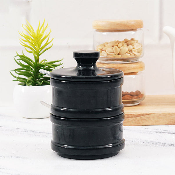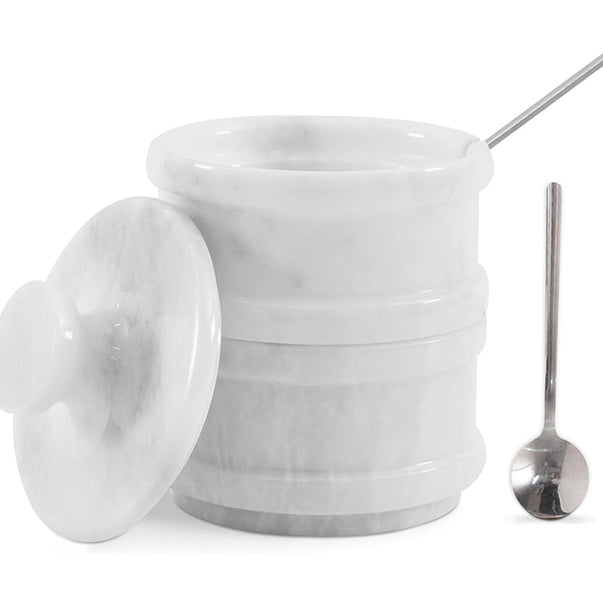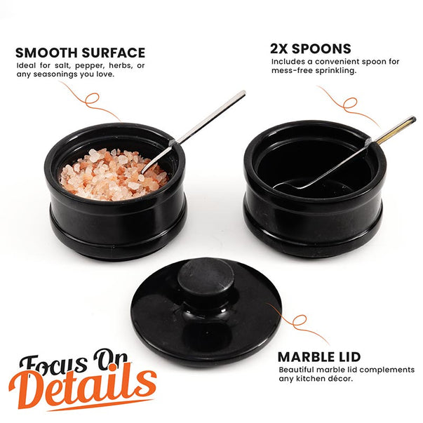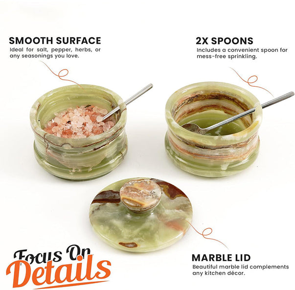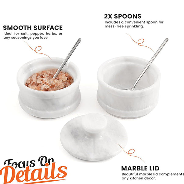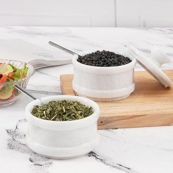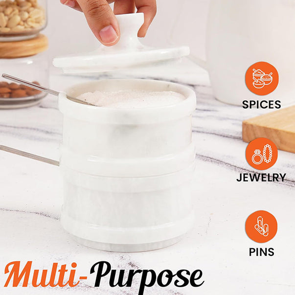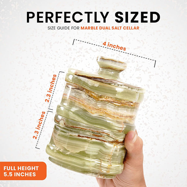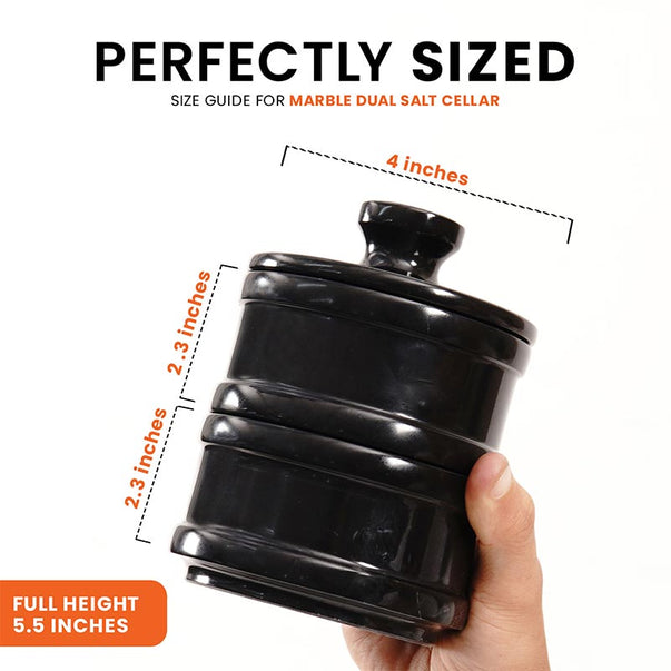 5.5” Marble Dual Salt Cellar With Lid, brown sugar storage containers - Kitchen Decor