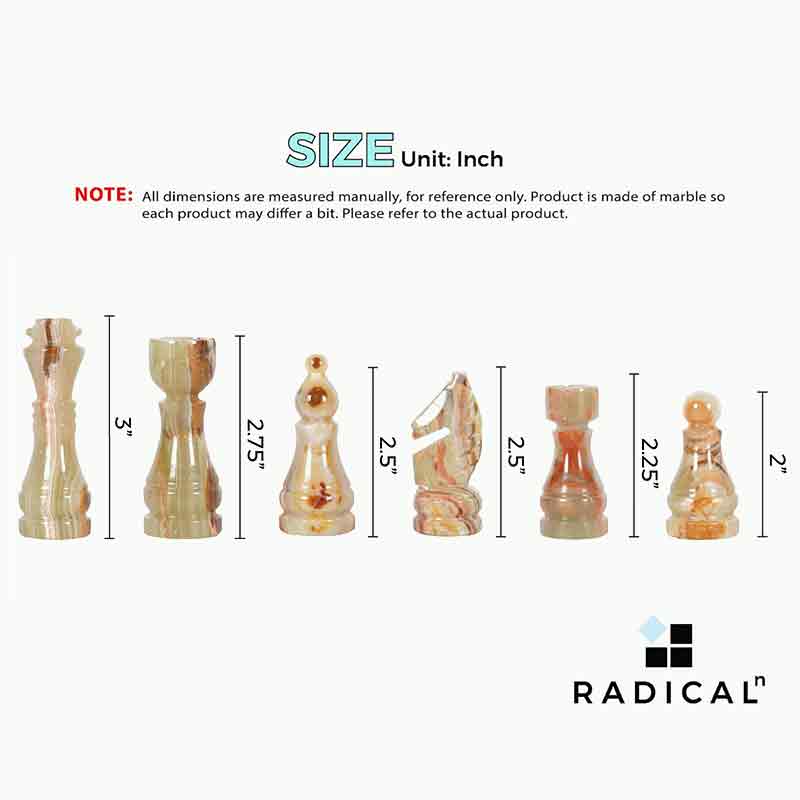 • Material: These chesspieces are from high-quality natural marble onyx and are fully hand polished.